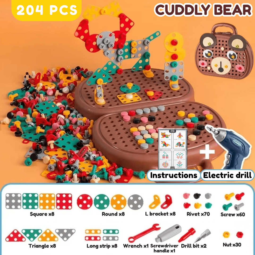 🔩 Let your child dive into hands-on learning with this interactive tool set designed to boost creativity, logical thinking, and fine motor skills. With a kid-friendly drill, colorful screws, and fun design cards, little engineers can create exciting 2D and 3D structures while developing essential STEM skills!