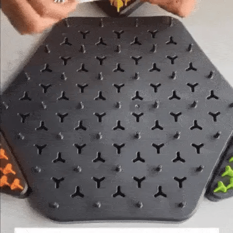 Als alle elastieken liggen, tellen jullie de driehoeken. Wie de meeste heeft, is de winnaar! 🎉 - 👉 Extra leuk: Speel samen met papa of mama als team. Zo bedenk je samen slimme zetten én hebben jullie dubbel plezier.