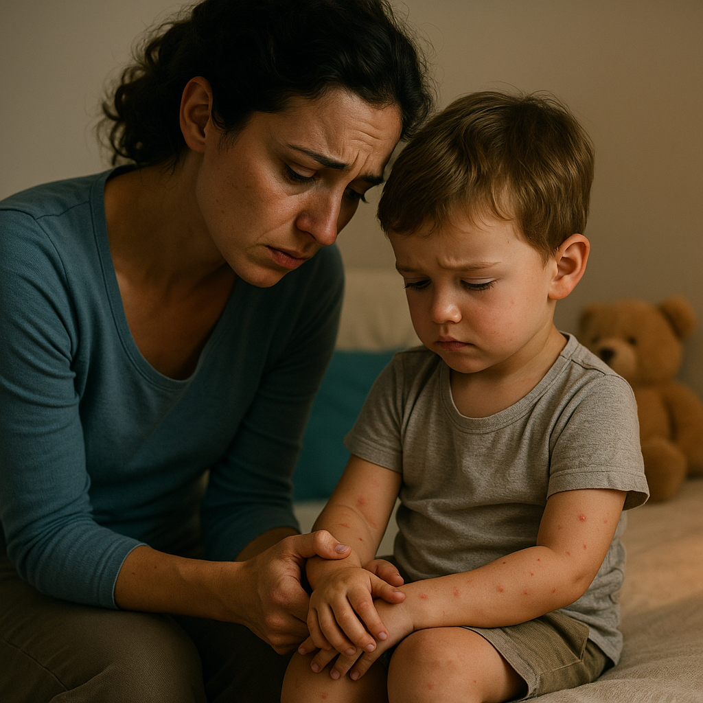 "Voorheen stond ik elke nacht meerdere keren naast het bed van mijn 3‑jarige Emma, omdat ze huilend wakker werd met rode, jeukende muggenbultjes.